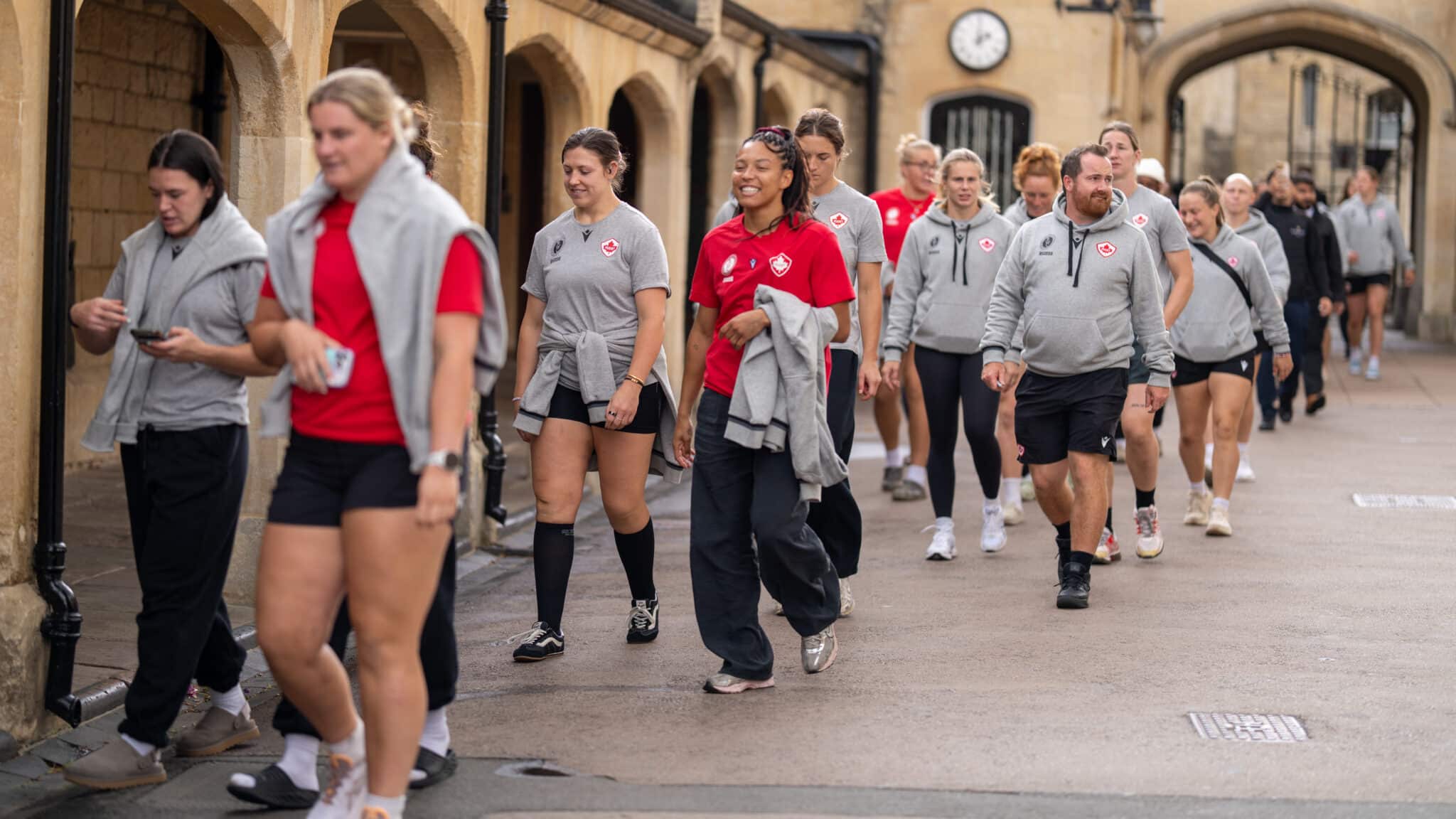 On Monday, we were very fortunate to be visited this week by the Canadian Women’s Rugby Team, who stopped at College for lunch and a run around while travelling from Manchester down to Exeter ahead of their next Rugby World Cup match against Scotland this weekend.