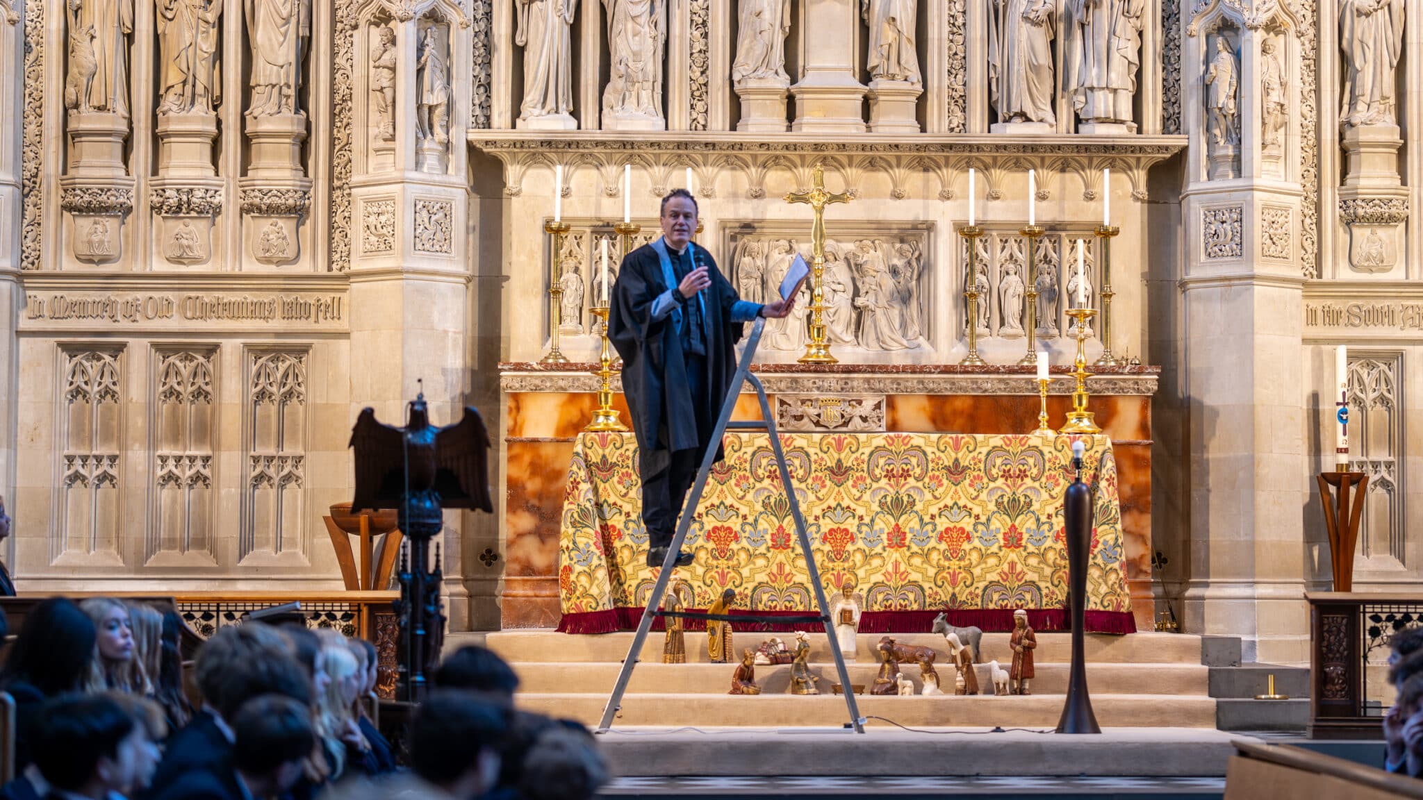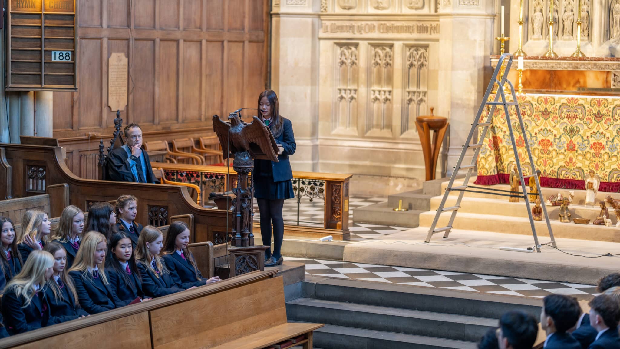 During morning chapel, students reflected on the nature of self-worth and the ways we measure our value. They were encouraged to consider whether they define themselves by comparison with others, illustrated as climbing a ladder, or by contributing to something greater, likened to a light that illuminates everything around it. The talk highlighted the difference between status and genuine self-worth, prompting thoughtful reflection among the congregation.
